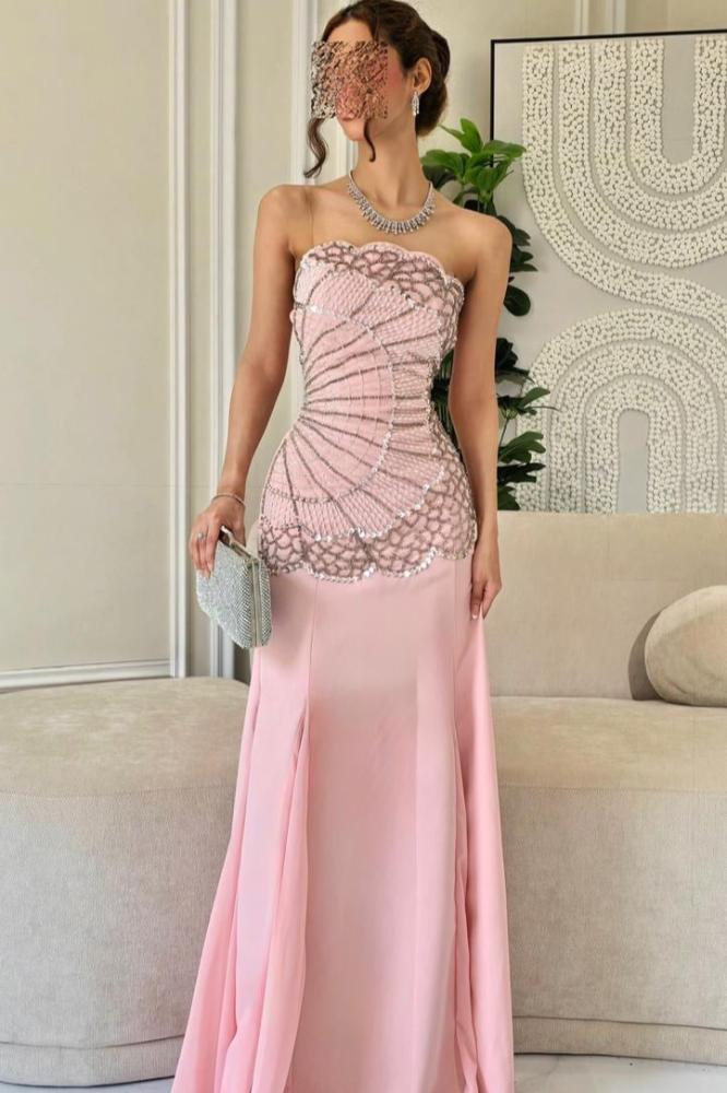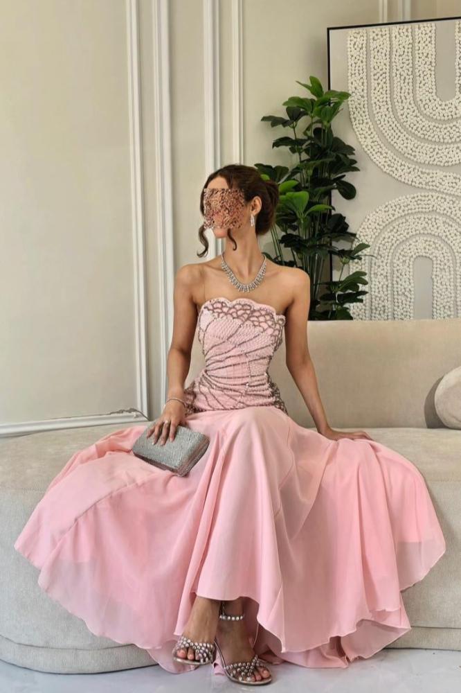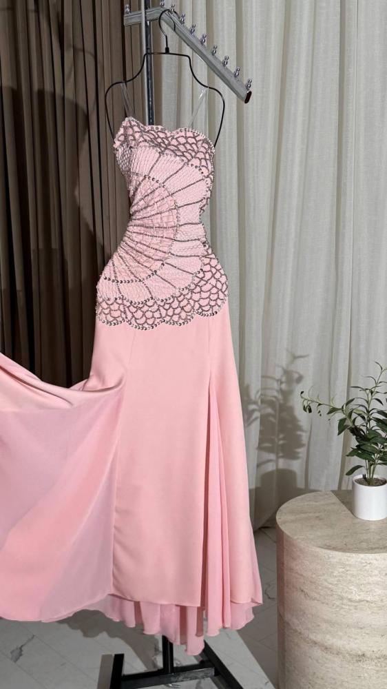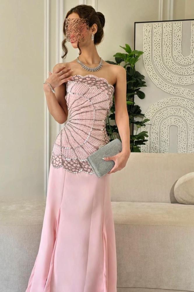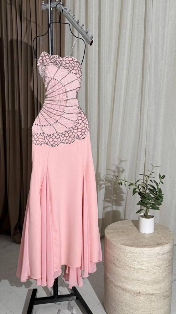 فستان سهرة توب مزين بالخرز لون وردي