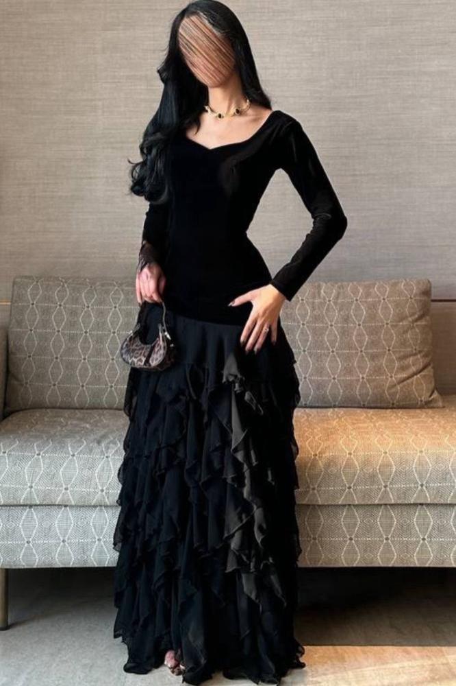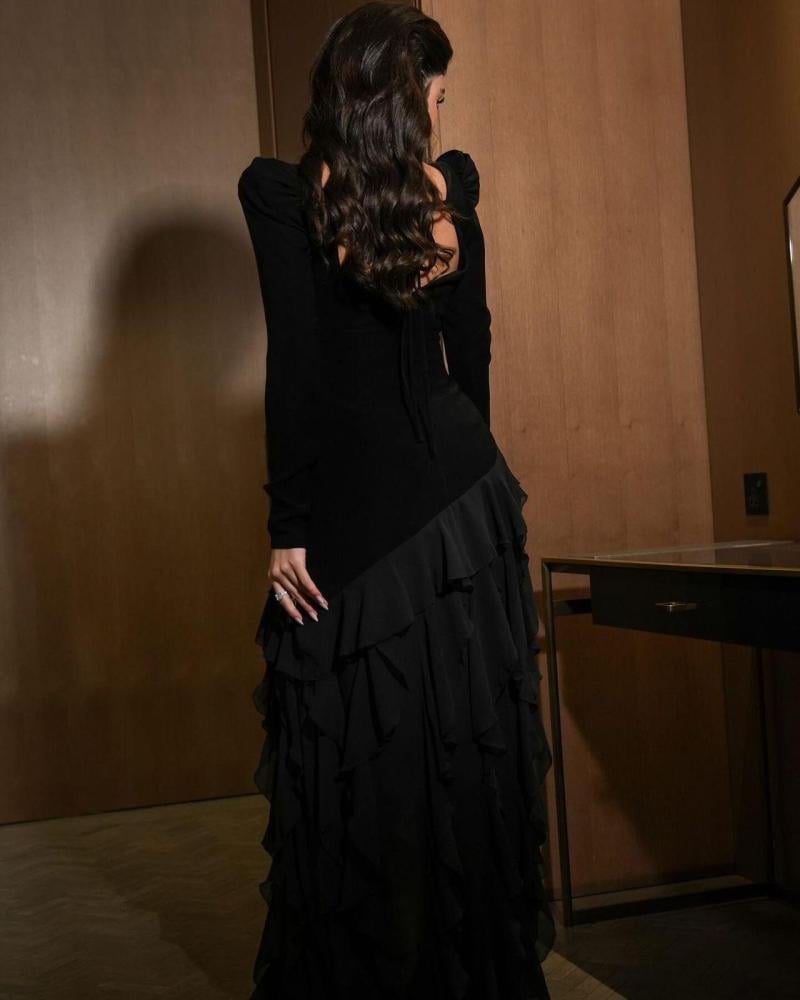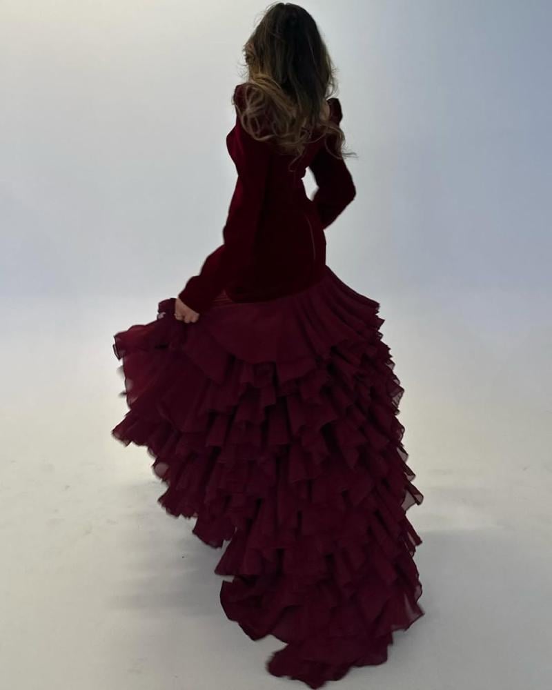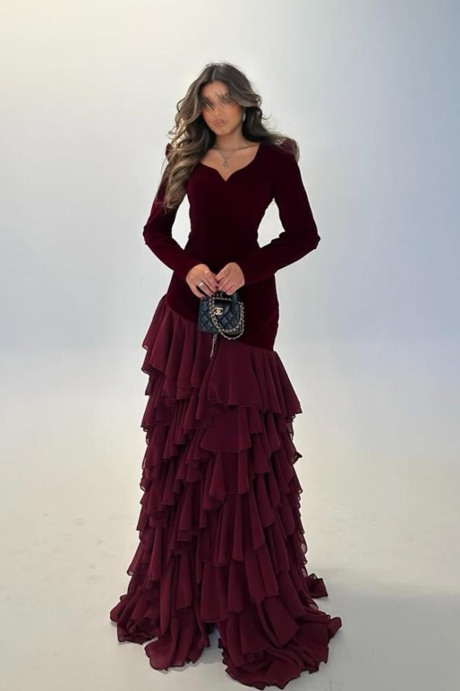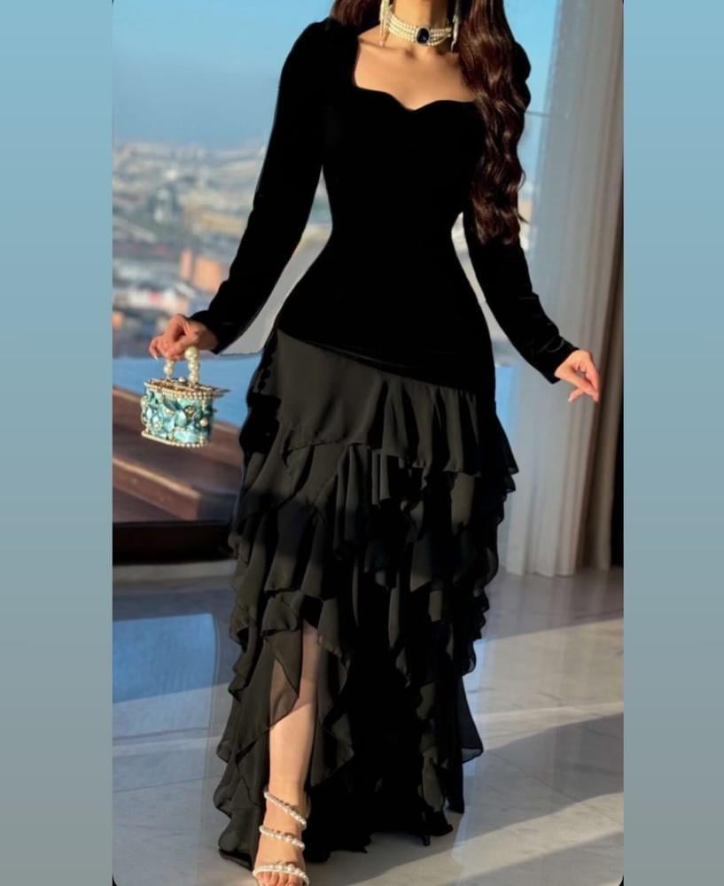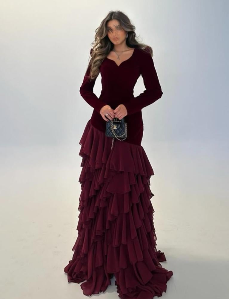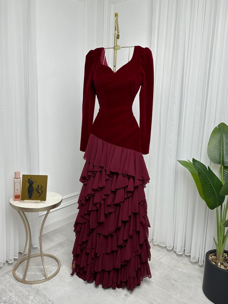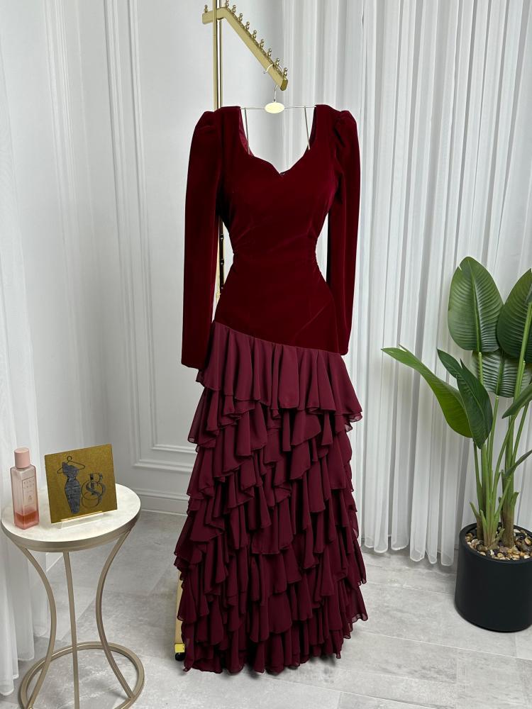 فستان سهرة جوخ المزين بالطبقات لونين