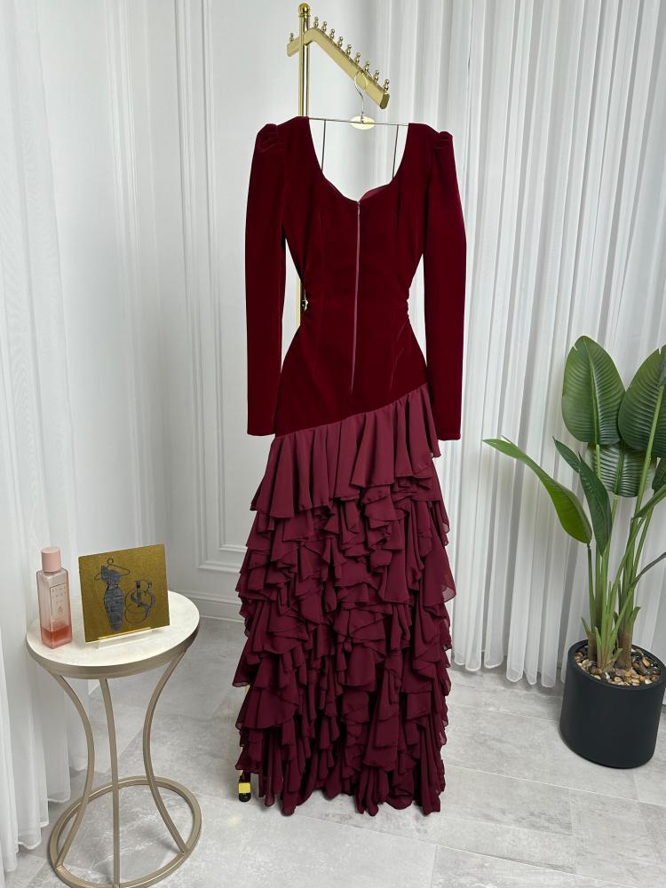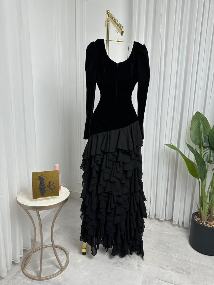 فستان سهرة  جوخ المزين بالطبقات لونين