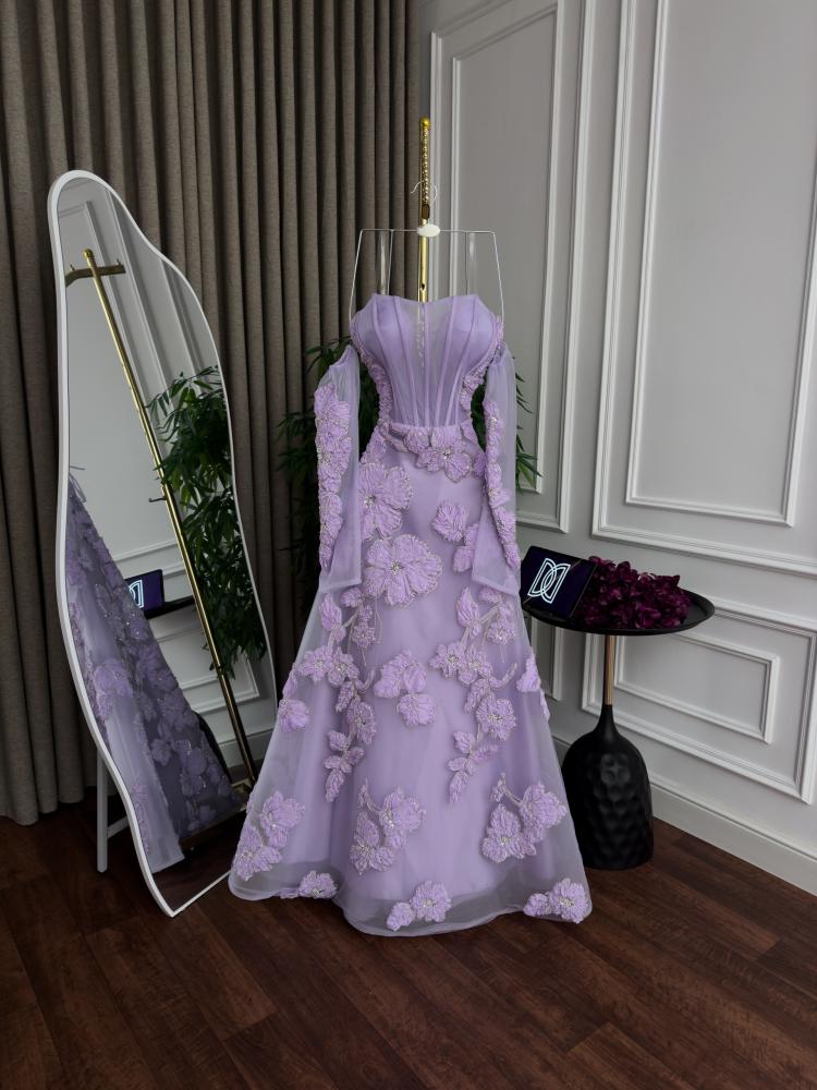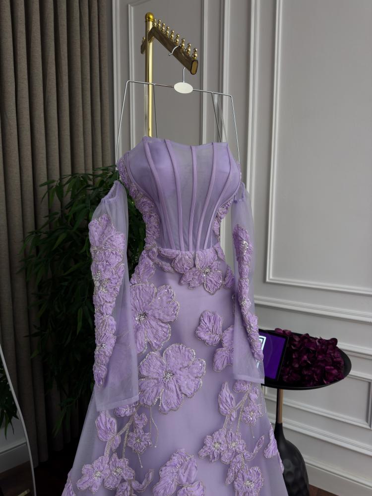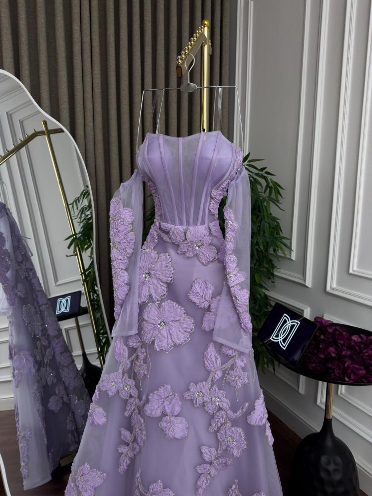 تألقي بإطلالة ساحرة وفخمة مع هذا الفستان الأنيق باللون البنفسجي الفاتح (الخزامى)، المصمم بقصة مميزة تجمع بين الرقي والجاذبية.